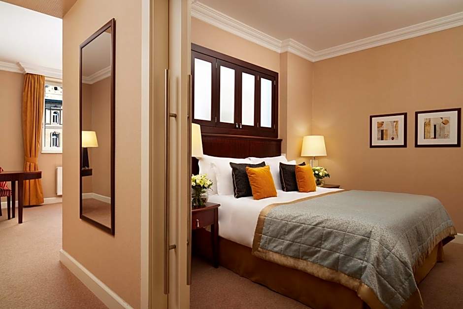Deluxe Suite (with Spa and Executive Club Access) is 743 square feet and includes a king-size bed 150-183 width plus living room, desk, satellite tv , cable tv, hairdryer, tea and coffee making facilities , ironing set, safe, bathrobes, and slippers.