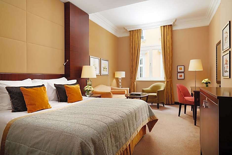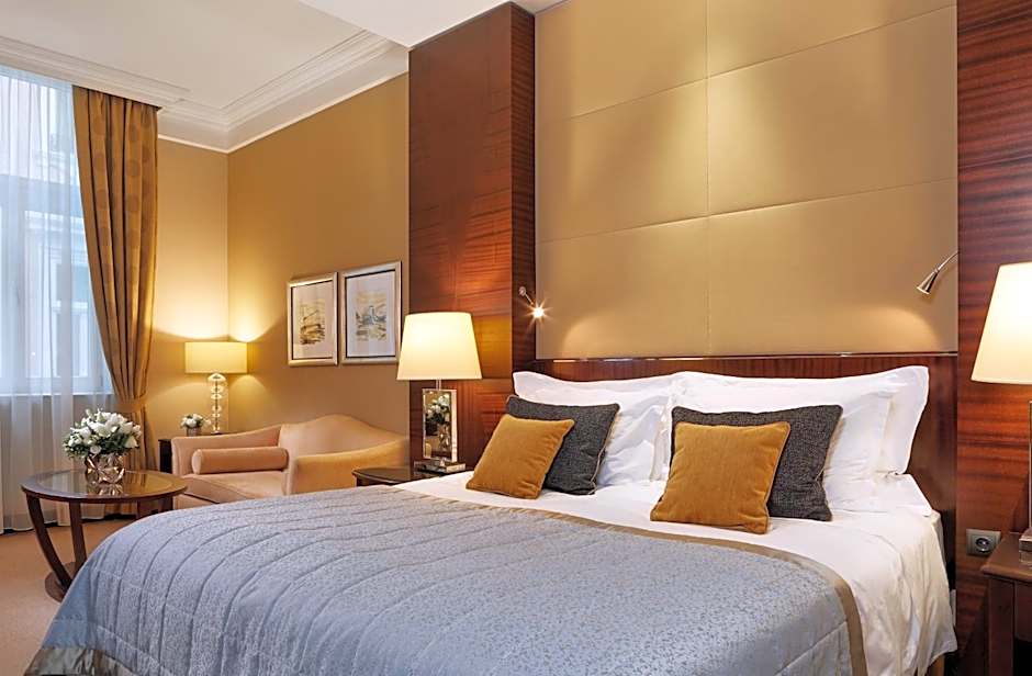 This spacious suite has air conditioning, views of the Grand Boulevard and a flat-screen TV with satellite channels. The marble bathroom is fitted with a bath. Some Deluxe Suites offer balcony as well.